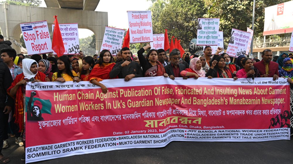 সমাবেশে শ্রমিক নেতারা বলেন, বাংলাদেশের সুনাম ক্ষুণ্ণ করা এবং তৈরি পোশাক শিল্প যাতে বাংলাদেশ থেকে অন্য দেশে চলে যায় এই উদ্দেশ্য নিয়েই প্রতিবেদনটি প্রকাশ করা হয়েছে। অনতিবিলম্বে বাংলাদেশ এবং নারী শ্রমিকদের কাছে ক্ষমা চাইতে হবে গার্ডিয়ান পত্রিকাকে।