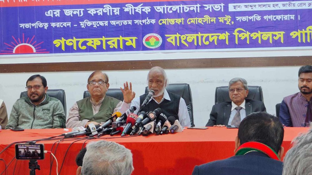 গণফোরামের সভাপতি মোস্তফা মোহসীন মন্টুর সভাপতিত্বে আরো বক্তব্য রাখেন বাংলাদেশ পিপলস পার্টির চেয়ারম্যান মো. বাবুল সরদার চাখারী, এনপিপির চেয়ারম্যান ফরিদুজ্জামান ফরহাদ, গণফোরামের সাধারণ সম্পাদক সুব্রত চৌধুরী, এবি পার্টির সদস্য সচিব মজিবুর রহমান মঞ্জু, গণ অধিকার পরিষদ একাংশের সভাপতি নুরুল হক নুর, গণঅধিকার পরিষদের আহ্বায়ক কর্ণেল অব. মিয়া মসিউজ্জামান প্রমুখ।
