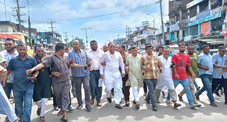 বৃহষ্পতিবার বিকেলে বিএনপির কেন্দ্রীয় ঘোষিত কর্মসূচির অংশ হিসেবে ছাত্রজনতার উপর গুলি চালিয়ে হত্যাকারী খুনি শেখ হাসিনা সহ তার দোসরদের বিচারের দাবিতে গোলাপগঞ্জ উপজেলা সদরে গোলাপগঞ্জ পৌর বিএনপি আয়োজিত অবস্থান কর্মসূচিতে প্রধান অতিথির বক্তব্যে তিনি এসব কথা বলেন।