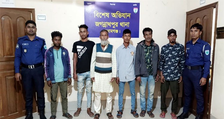 গ্রেফতারকৃত আসামীরা হলেন-উপজেলার রানীগঞ্জ ইউনিয়নে অনন্ত গোলাম আলীপুর গ্রামের মৃত নূর উল্লার ছেলে কাজল মিয়া (৫০) ও ছুনু মিয়া (৪০), আফজাল মিয়ার ছেলে শাহিনুর মিয়া (২৫), কাজল মিয়ার ছেলে আলমগীর মিয়া (৩০), মারফত মিয়ার ছেলে ইসলাম উদ্দিন (২৫), আব্দুন নূরের ছেলে দিদার আলম (২০ ও আব্দুন নূরের স্ত্রী শারবান বেগম (৪০)।