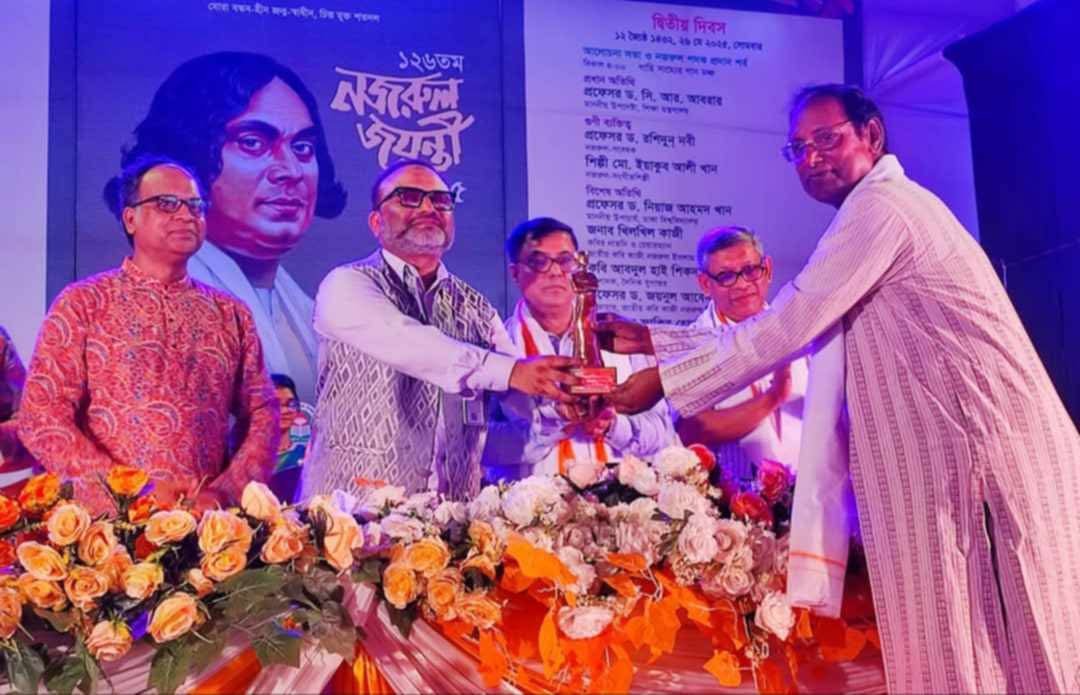 সোমবার (২৬ মে) জাতীয় কবি কাজী নজরুল ইসলাম বিশ্ববিদ্যালয়ের ‘গাহি সাম্যের গান’ মুক্তমঞ্চে এক আয়োজনের মধ্য দিয়ে নজরুল পদক ২০২৫ প্রদান করা হয়। ঢাকা বিশ্ববিদ্যালয়ের উপাচার্য অধ্যাপক ড. নিয়াজ আহমেদ খান ও নজরুল বিশ্ববিদ্যালয়ের উপাচার্য অধ্যাপক ড. মো. জাহাঙ্গীর আলম পদকপ্রাপ্তদের হাতে সম্মাননা স্মারক ও পদক তুলে দেন।
