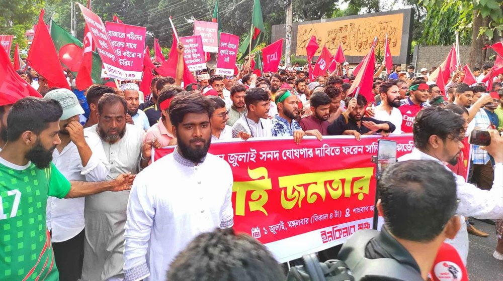 মঙ্গলবার বিকালে জুলাই সনদের দাবিতে শাহবাগ থেকে ফরেন সার্ভিস একাডেমি মুখে ‘জুলাই জনতার লালমার্চ’ কর্মসূচি পালন করে সংগঠনটি। বিকাল ৫টার দিকে মিছিলটি কাকরাইল মোড়ে পৌঁছালে পুলিশ বাধা দেয়। পরে কাকরাইলে অবস্থান নিয়ে তারা সন্ধ্যা ৬টা পর্যন্ত কর্মসূচি চালিয়ে যায়। এরপর ‘জুলাইয়ের কফিন মার্চ’ কর্মসূচি ঘোষণা দিয়ে অবস্থান কর্মসূচি সমাপ্ত করে।